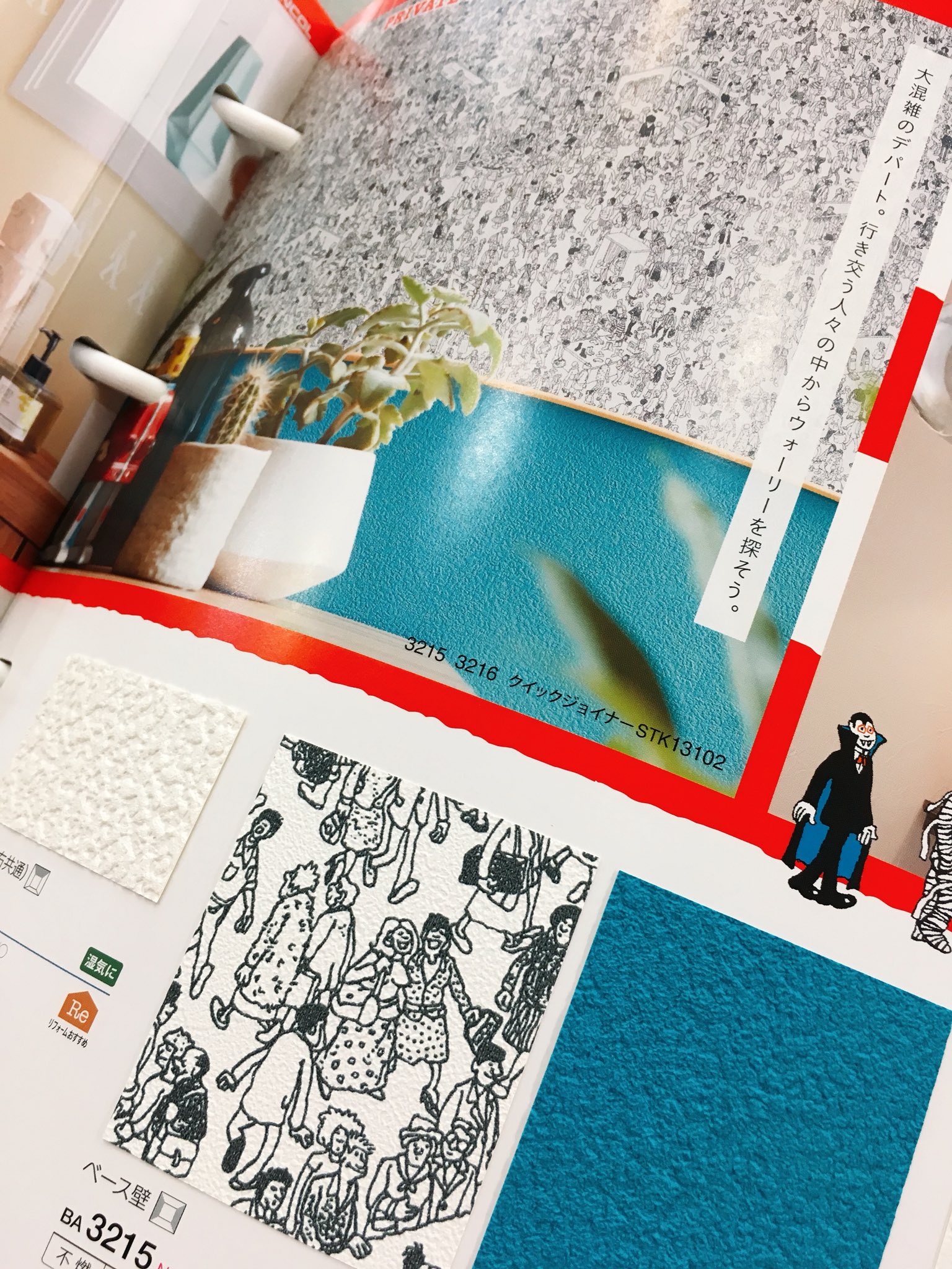 チラット 以前ここで見た ウォーリーを探せの壁紙 うちの店長も見たようで さっそく壁紙のカタログを取り寄せ 今度貼るわ モデルハウスのトイレに貼るわ と嬉々としています 掃除に行った際 わたくし帰って来れる気が